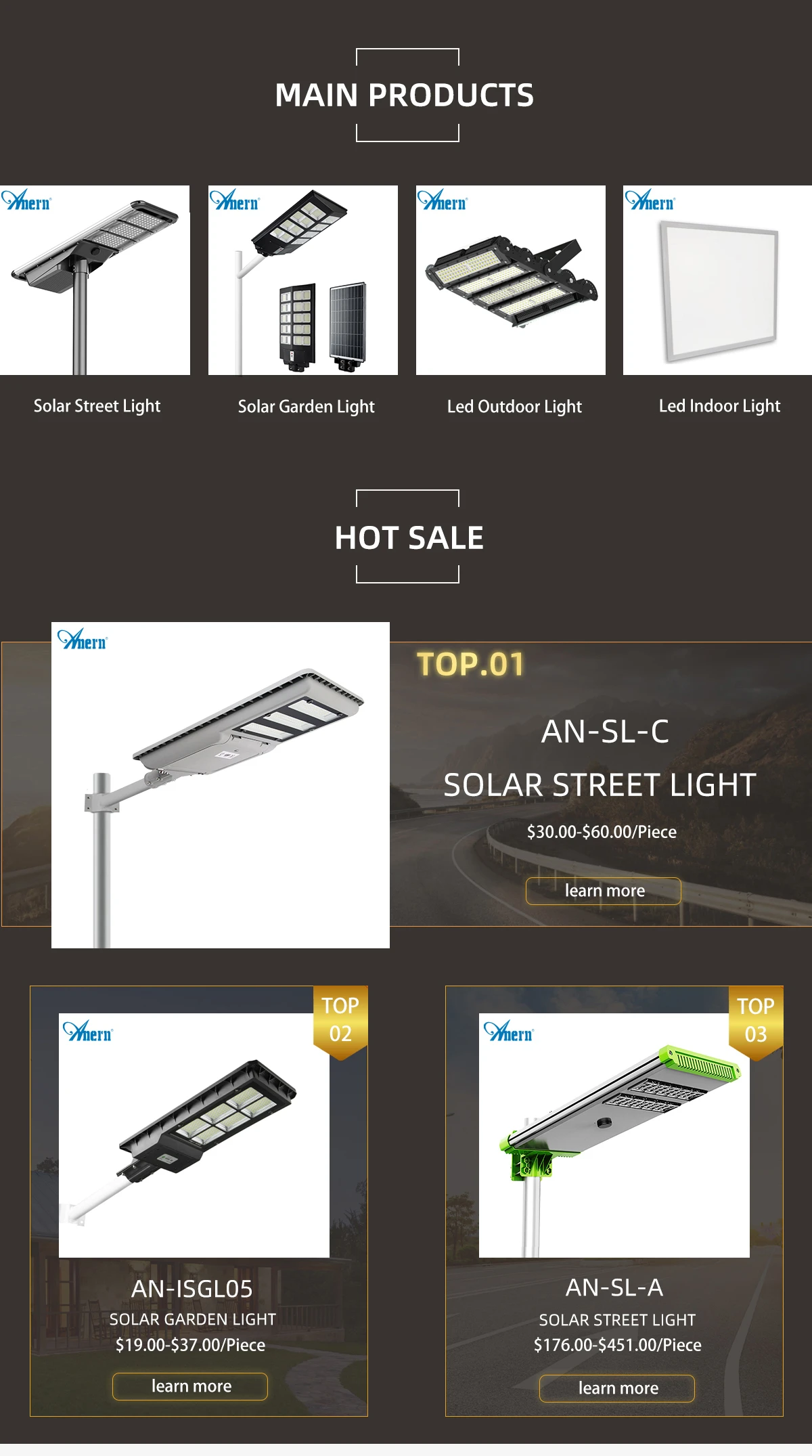Anern Industry Group Limited Solar Street Light Solar Garden Light Solar Flood Light Led Light